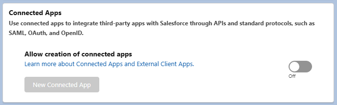 Starting in Spring ’26, customers can’t create new Connected Apps (via UI or API) unless they request the ability from Salesforce Support. This is a real governance shift. Installing packages that include Connected Apps is treated as an exception. It prevents the “someone created an OAuth client in prod” surprises and pushes orgs toward External Client Apps as the newer model.